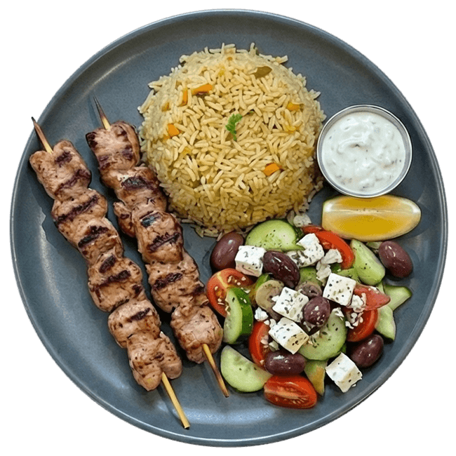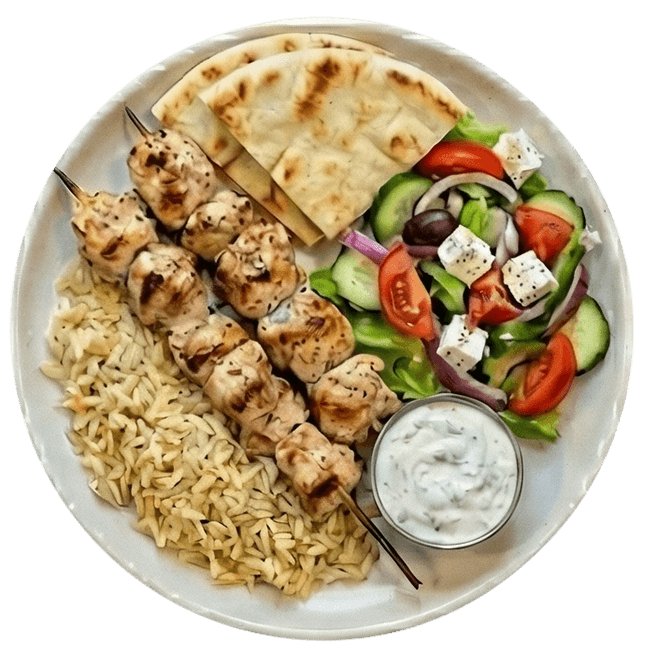 Tender charbroiled skewers served with rice and Greek salad. A standout specialty that sets Maintrack apart.