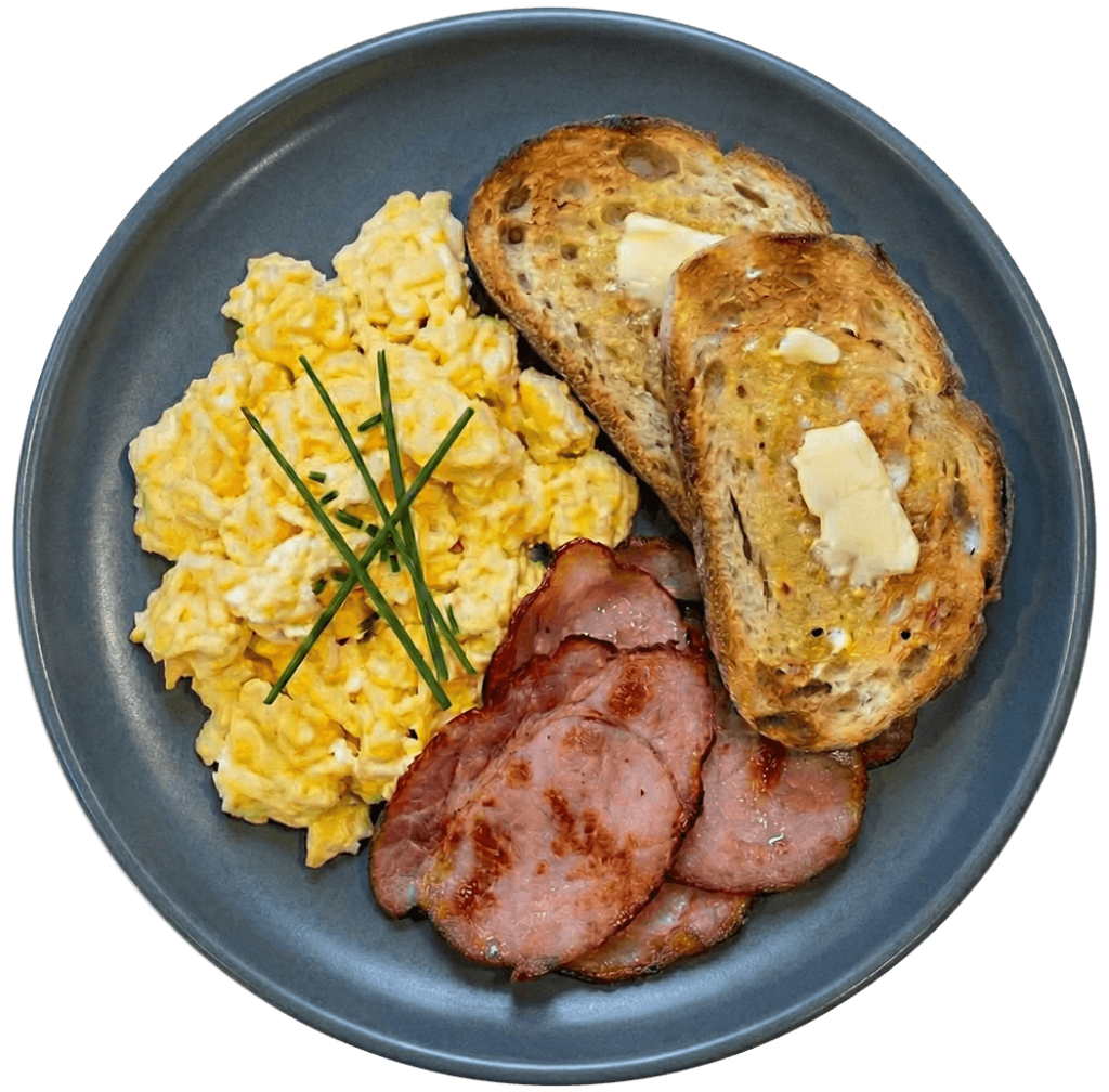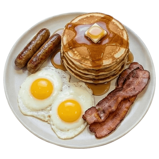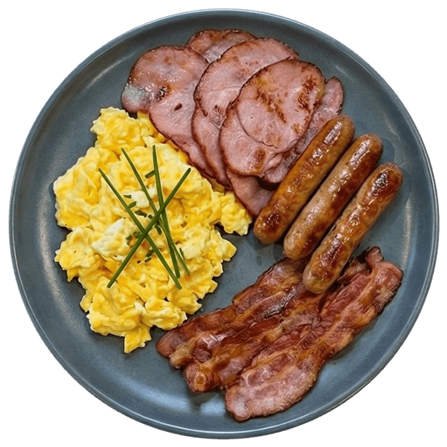 The ultimate all-day breakfast plate with ham, bacon, sausages, and eggs — a true crowd favorite.